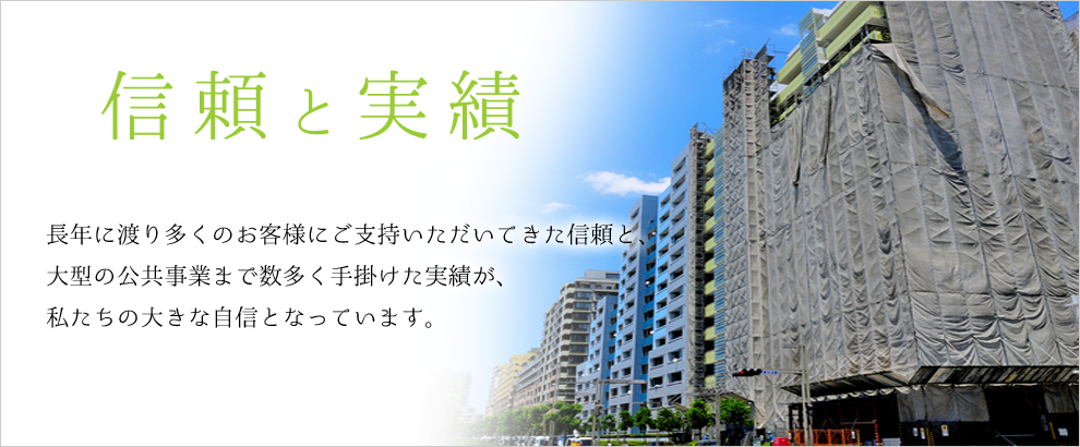 弊社は、公共工事、大型商業施設やビル・タワーから戸建ての住宅からまで、40年以上に渡り経験と実績を積み重ねて参りました。